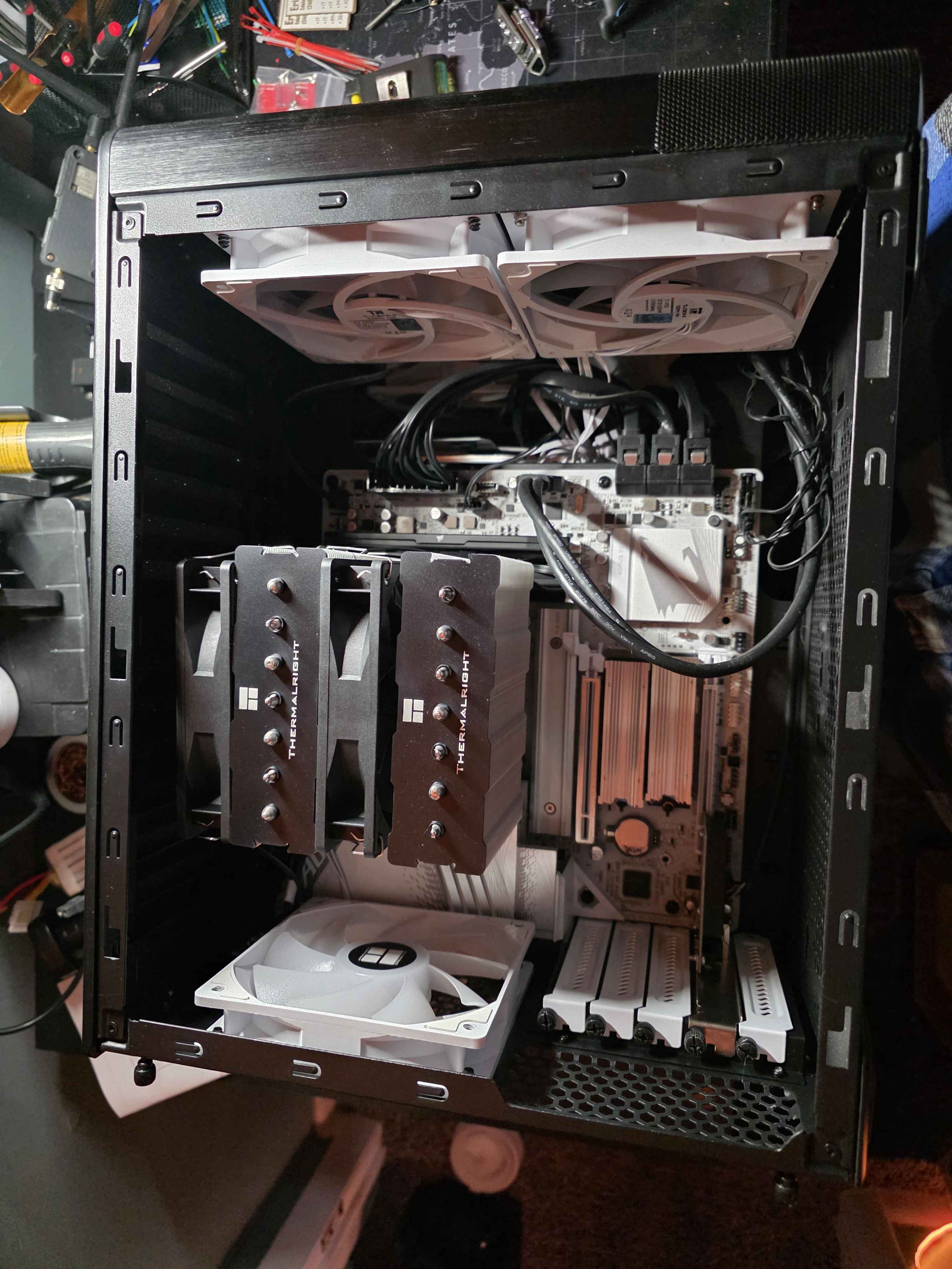 The homelab is built on a compact but high-performance platform designed to support virtualization, storage, and future expansion. It is housed in a Fractal Design Node 804 case and powered by a GIGABYTE Z790M AORUS Elite AX ICE motherboard paired with an Intel Core i9-13900K. The system is equipped with 64 GB of CORSAIR VENGEANCE DDR5 RAM, providing ample memory for running multiple virtual machines and lab workloads simultaneously.
